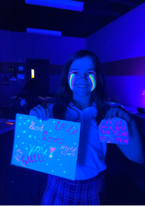 Though I wanted to get photos of all of these precious treasures and their amazing "arts of kindness", I didn't manage to do so (though I tried). I think some were distracted when I called them for photos (including my son... so bummed I didn't get a photo of this special memory with him), because those who finished a little early and cleaned their area were allowed to play with some fluorescent balloons! The students artwork turned out amazing! I was so proud of each one of them!